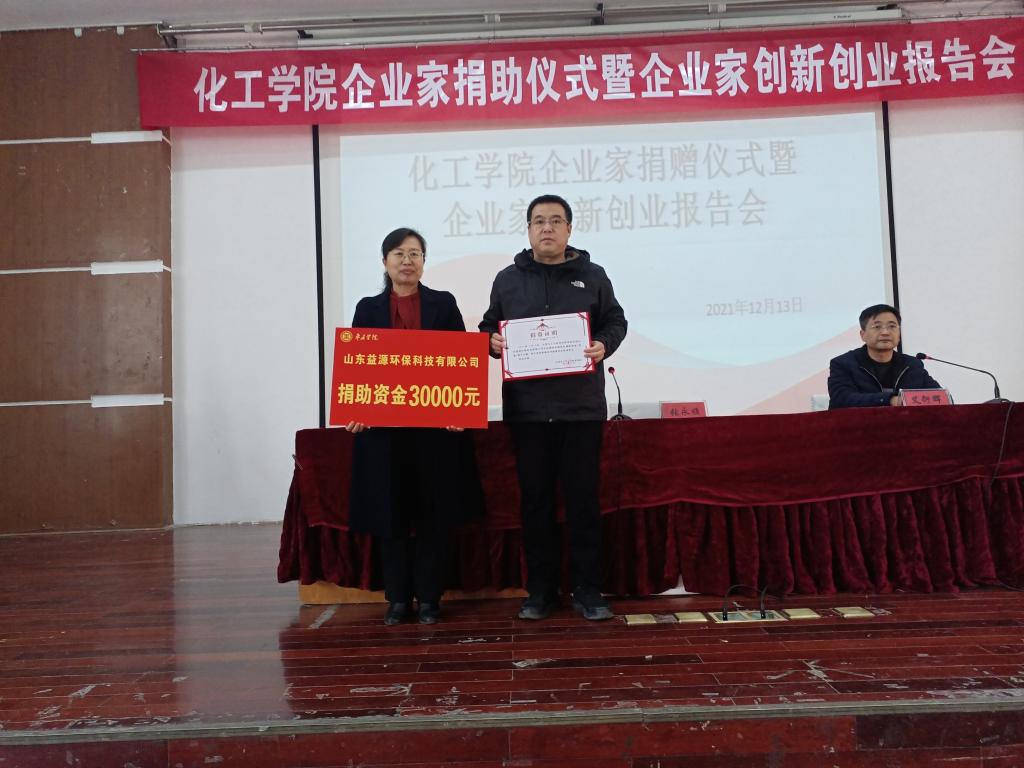 12月13日,化学化工与材料科学学院在文科楼报告厅举办企业家捐助仪式暨企业家创新创业报告会。学院党总支书记艾衍辉、院长刘春丽、山东益源环保科技有限公司总经理张永顺,全院受资助学生及部分学生代表参加会议。