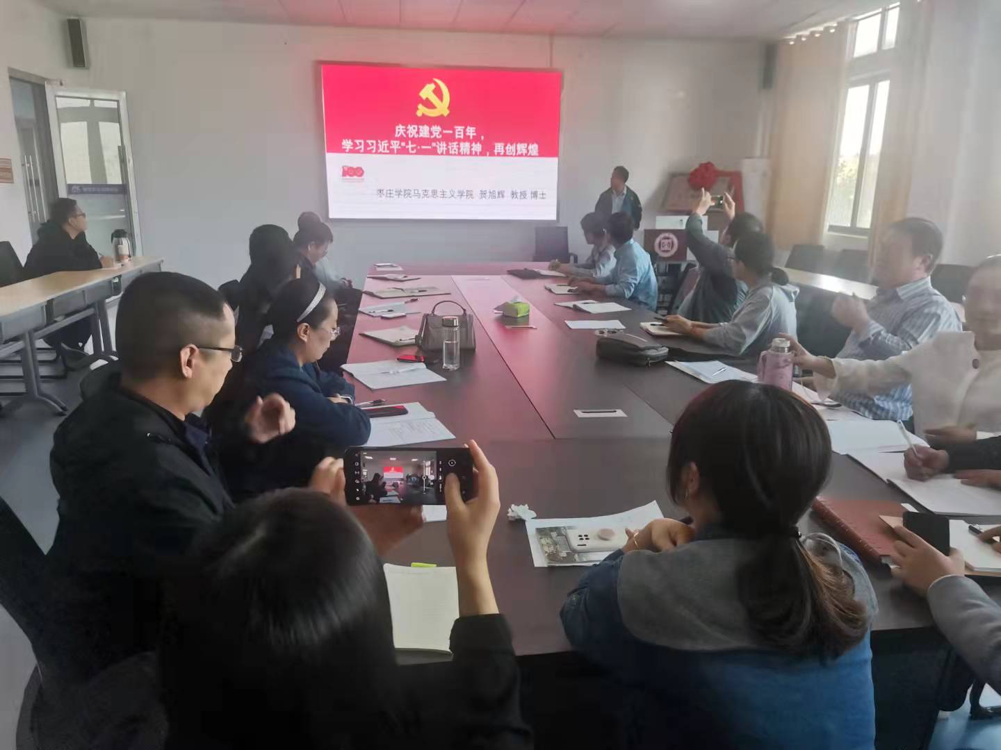 10月13日下午,马克思主义学院贺旭辉教授应邀为人工智能学院作题为《庆祝建党一百周年,学习贯彻习近平总书记“七一”重要讲话精神,再创辉煌》的党史学习教育专题报告,人工智能学院全体教职工聆听了此次报告。