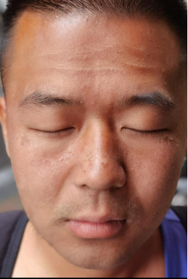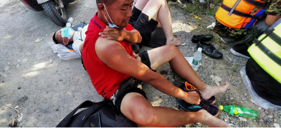 冀腾飞暴晒在阳光下,皮肤多处晒伤。提及受伤,冀腾飞和曹凤佳一样,都用了同样的语气讲到,“没事儿的,过几天就好了,已经蜕皮了。”