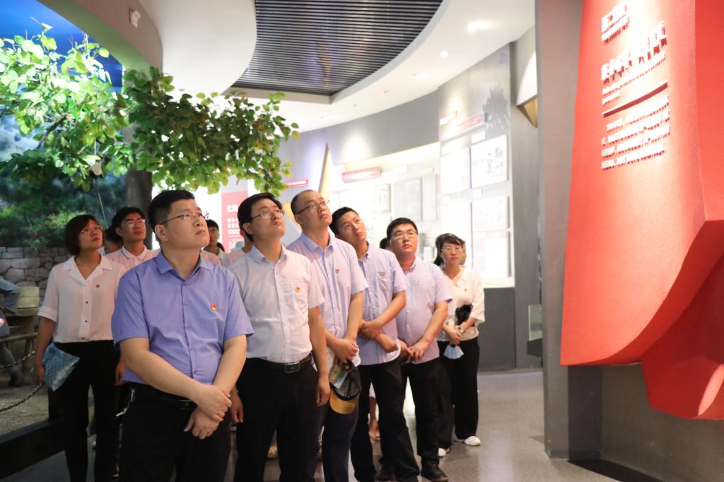 参观开始前,在鲁南抗日民主政权建设纪念馆大厅内,全体党员同志整齐排列,面向党旗,举起右拳,重温入党誓词,牢记初心使命,坚定理想信念。