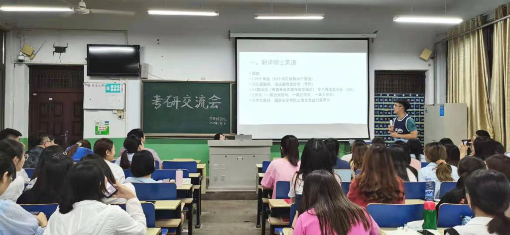 针对外国语学院备考2022年研究生考试的同学们,黄成亮提出了三点建议:一要坚定信念,毫不动摇,把握机遇,乘势而上;二要做好规划,优化状态,劳逸结合,张弛有度;三要相信自己,坚守初心,激情奋斗,不负青春。交流会结束后,副院长孙显云组织同学们进行现场交流,答疑解惑。