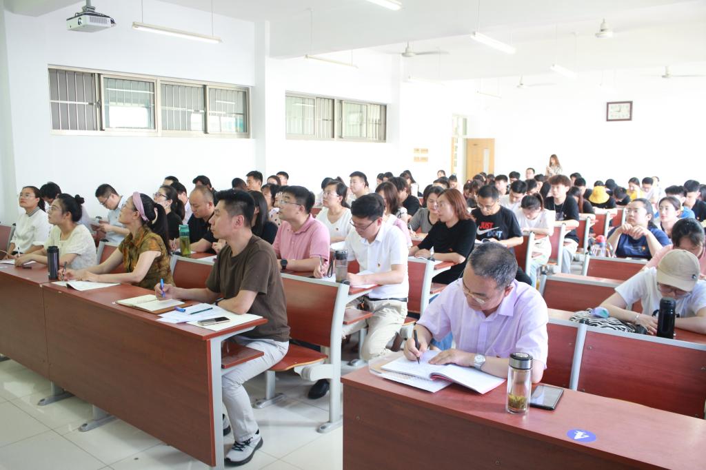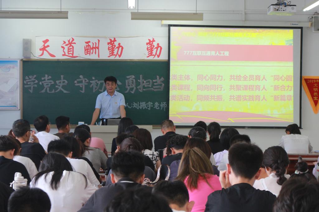 本次党课分为“学党史”、“守初心”、“勇担当”三部分,刘振宇深入阐述全党开展党史学习教育的重要性,结合落实学校“777互联互通育人工程”、打造“7类主体同心同力”育人群等对开展党史学习教育的方式进行了解释。他强调,要坚持理论教学与实践活动相统一、显性教育和隐性教育相统一、构建全员全方位全过程育人格局,老师们要身正为范、精益求精,努力提升育人水平和人才培养质量。