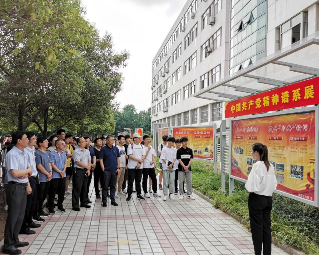 展览以时间顺序为轴。在革命、建设、改革、复兴的壮阔征程上,一大批英模人物顽强奋斗、忘我奉献,形成了井冈山精神、长征精神、延安精神、西柏坡精神、抗美援朝精神、‘两弹一星’精神、抗疫精神等伟大精神,构筑起了中国共产党人的精神谱系。中国共产党人的伟大精神,铸就了中国特色社会主义道路自信、理论自信、制度自信、文化自信,筑牢了中国共产党人的信仰之基。一段段历史、一个个革命故事让师生党员深受震撼,备受鼓舞,大家纷纷表示要知党史、感党恩,从百年历程中传承红色基因,弘扬红色精神,在新征程上贡献自己的力量。