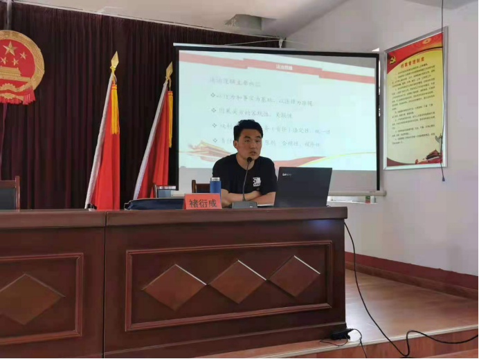 5月25日上午,凫城镇党史学习教育专题报告会在付庄办事处举办,马克思主义学院褚衍成老师受邀以“树立法治信仰,坚持走中国特色社会主义法治道路”为题作党史宣讲报告。凫城镇主要领导干部、村“两委”成员100余人听取报告。