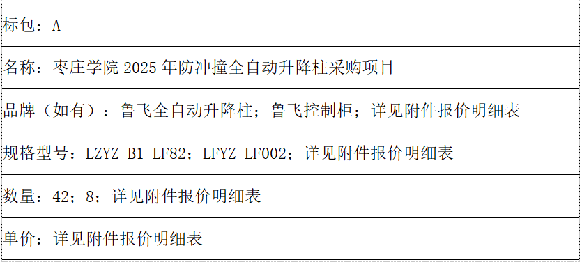 二、项目名称:DB中国旗舰官方网站2025年防冲撞全自动升降柱采购项目