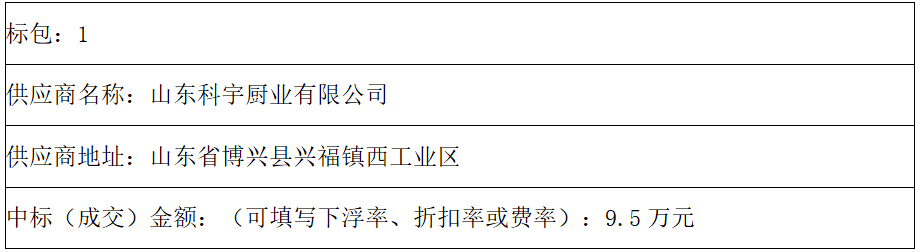 标包1:山东科宇厨业有限公司(75.0、85.0、88.0)、山东汇泉厨业有限公司(77.76、77.76、82.76)、山东金佰特商用厨具有限公司(78.1、78.1、79.1)、上善教育装备(山东)有限公司(57.74、60.74、63.74)