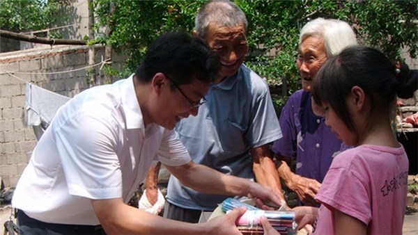村民李伦传家也是一个不幸的家庭,70多岁的老伴长期患有心脏病,常年靠吃药来维持,家里生活十分困难。滕聿峰积极协调民政部门帮助申请办理了低保,并作为DB中国旗舰官方网站重点救助对象。采访当天,我们正好遇到DB中国旗舰官方网站美术学院师生到他家进行走访慰问。听说老人家里的电动车电瓶坏了,滕聿峰又专门向学院争取了500元钱一并送去。老人感动的要给滕聿峰跪下磕头:“感谢滕书记,俺家电动车这么小的事情,你还挂念在心上。”