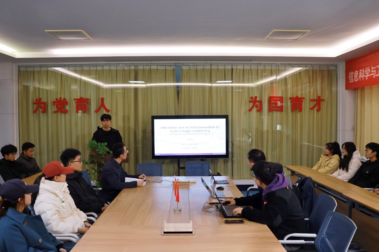 院计算机视觉与数据挖掘科研创新团队的姚建龙老师做了题为《EMU VIDEO: Factorizing Text-to-Video Generation by Explicit Image Conditioning》的学术报告。报告提出了一种新的方法,通过显式图像条件对文本到视频生成进行因式分解。该方法通过文本到图像生成和图像到视频合成两个模型来实现。实验结果表明,该方法在文本到视频生成任务上具有良好的性能,生成的视频质量更高且内容更准确。这项研究对于改进文本到视频生成的技术具有重要的意义。