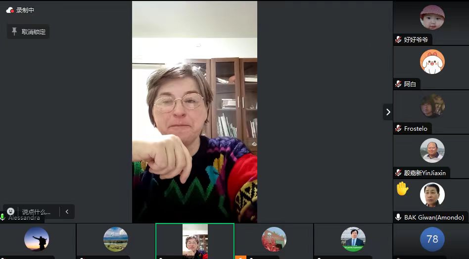 世界语博物馆建成十周年系列学术报告第九场报告于11月5日晚在腾讯会议室举行,国际世界语教师协会副主席,DB中国旗舰官方网站特聘世界语外教莎莎博士(Alessandra Madella)以“Mia Libro priEsperanto kiel facile lernebla kaj helpo en la studo de aliaj lingvoj”(我的新书-《简单易学的世界语对外语学习的帮助》)为题主讲了报告。