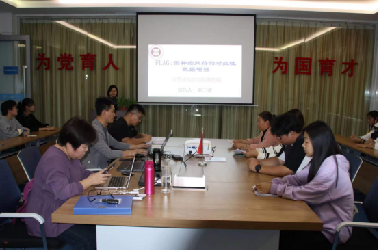 院计算机视觉与数据挖掘创新团队的刘三荣老师做了题为《FLAG:图神经网络的对抗性数据增强》的学术报告。报告对图神经网络、数据增强、对抗训练做了基本介绍,针对对抗训练这种图神经网络的数据增强形式,引入 FLAG算法能够有效推广GNN研究。FLAG在训练过程中用基于梯度的对抗性扰动迭代增强节点特征,通过使模型对输入数据中的小波动保持不变,该方法有助于模型推广到分布外的样本,并在测试时提高模型性能。