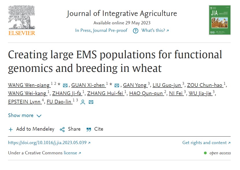 近日,我校生命科学学院小麦遗传育种团队在《Journal of Integrative Agriculture》(中科院一区)发表小麦种源创新的研究论文。