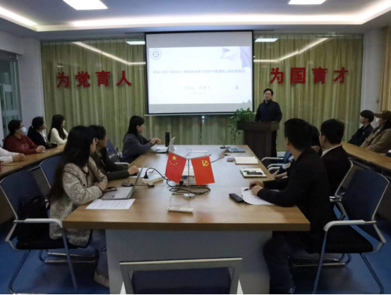 机器学习与粒度计算科研创新团队燕孝飞教授作了题为《RFB-SSD-MASK:一种复杂场景下的多尺度遮挡人脸识别算法》的学术报告。针对复杂场景下遮挡人脸的多样性、尺寸不一等问题,提出一种遮挡人脸识别算法RFB-SSD-MASK。该算法基于SSD算法,采用RFB模块,利用多分支结构增强网络特征表达能力,通过引入改进注意力机制,增强特征图的表达能力,最后通过自适应特征融合,构建RFB-SSD-MASK遮挡人脸识别模型。实验结果证明,该算法对复杂场景下多尺度遮挡人脸的检测有较好的识别效果。