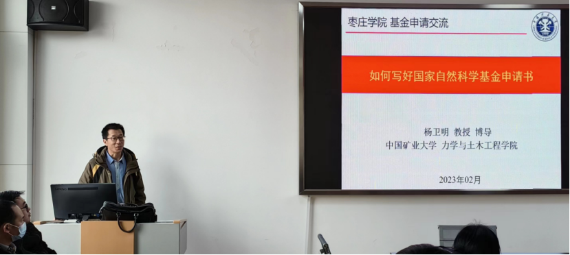 2月16号下午,光电工程学院邀请中国矿业大学教授、博士生导师杨卫明为学院教师作了题为《如何写好国家自然科学基金申请书》的专题报告。报告会在实验楼大数据会议室举行,会议由院长梁兰菊主持。
