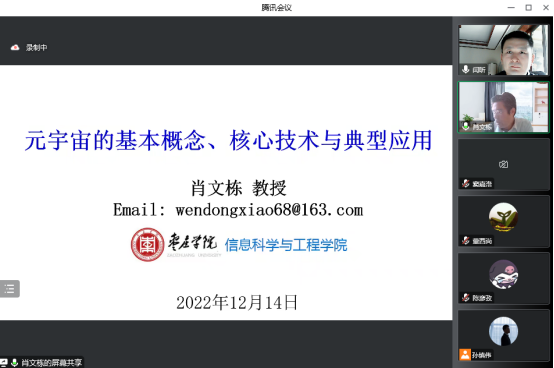 12月14日下午,信息科学与工程学院肖文栋教授以《元宇宙的基本概念、核心技术与典型应用》作线上学术报告。学院全体专任教师、部分学生线上参加学术报告,院长闫昕主持报告会。
