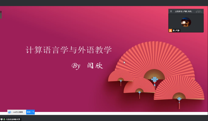 11月23日下午,外国语学院举办第七期“青年学者学术论坛”。此次论坛采取线上方式进行,我院中国矿业大学在读博士闫欣老师作了题为“计算语言学与外语教学”的学术报告,全体专任教师参加本次学术论坛。