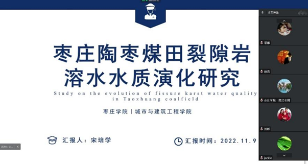 近日,城市与建筑工程学院在线上举办第十八期青年学者论坛,给排水科学与工程教研室宋培学博士结合其研究方向作了题为《枣庄陶枣煤田裂隙岩溶水水质演化研究》的学术报告,给排水科学与工程教研室老师参加本次论坛。