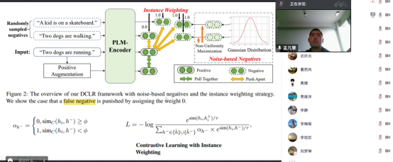 大数据与生态安全科研创新团队孟凡擎博士作了题为《基于对比学习的去偏无监督句子表示》的学术报告。报告针对已有工作在获取负例时的“假负例”和“各向异性表示”等问题,提出了一种去偏对比学习框架,惩罚了可能的假负例,并提出基于噪声生成负例的方法来缓解表示各向异性的影响。