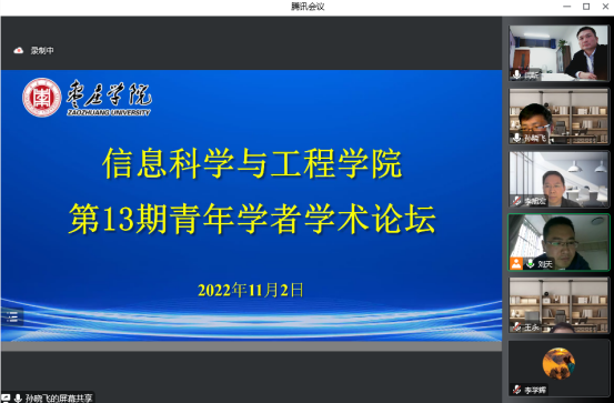 11月2日下午,信息科学与工程学院举办第十三期青年学者学术论坛,科研团队全体教师线上参加学术论坛。