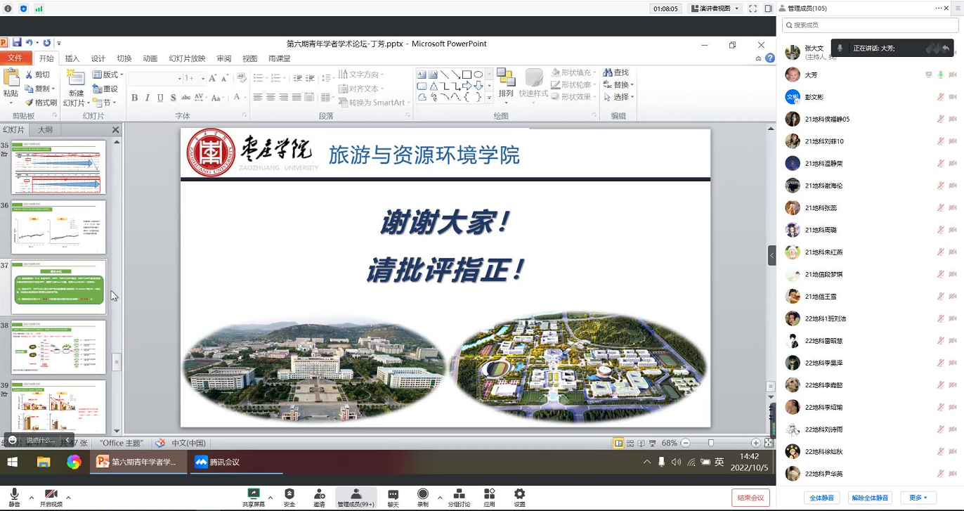 为增进青年科技人员之间的学术交流和知识传播,助力高素质应用型人才培养,旅游与资源环境学院于10月5日在腾讯会议举办了第六期青年学者学术论坛。本次论坛由青年博士丁芳担任主讲,学院全体专任教师及部分专业学生共计110余人参加本次线上报告会。