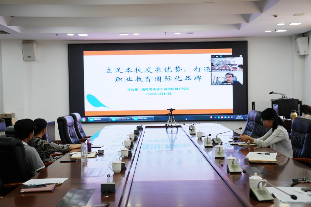 6月3日下午,柬埔寨西哈努克港工商学院执行校长李传彬应邀以线上视频方式参加我校“开放合作 拓展国际化办学新局面”系列讲座(六)。讲座由国际交流处处长褚夫敏主持。江苏大学、无锡商业职业技术学院、滕州市墨子研究中心、校相关部门、学院负责人及教师代表通过线上或线下方式参会。