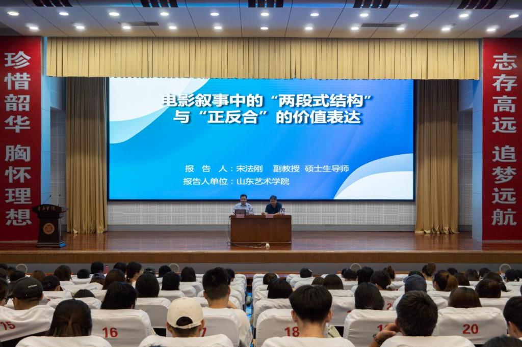 为庆祝建党100周年,传媒学院开展了包括主题党课、主题团课、红色影视作品进课堂、学术报告等一系列活动。6月25日,学院邀请山东艺术学院宋法刚博士在综合楼报告厅做了题为《电影叙事中的“两段式结构”与“正反合”的价值表达》的学术报告,报告由院长张爱民主持,学院300余名师生参加了此次报告。