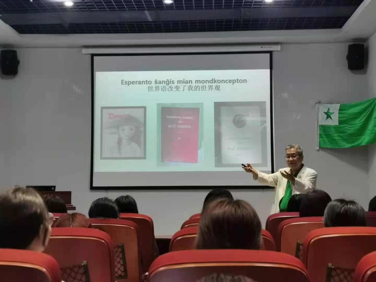 5月31日上午,国际教育学院在世界语博物馆学术报告厅举办“世界语学习与国际视野提升”系列讲座(三),国际世界语协会终身会员、韩国建国大学博士、我校外籍教师朴基完做了“世界语改变了我”的报告,世界语专业负责人吴娟老师主持,来自2018、2019级世界语专业的学生参加了此次讲座。