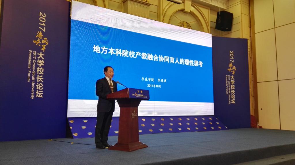 李进京应邀在论坛上做了题为《地方本科院校产教融合协同育人的理性思考》的报告。李进京在报告中指出,地方本科院校作为我国高等教育体系中的主体力量,承担着为区域经济社会发展提供人才支撑的重要使命。面对地区高素质应用型、复合型人才的紧缺和高校毕业生就业越来越难的突出矛盾,地方本科院校必须立足地方,面向区域,深化产教融合,加强协同育人,在提升服务区域经济社会发展能力的过程中实现自我发展。