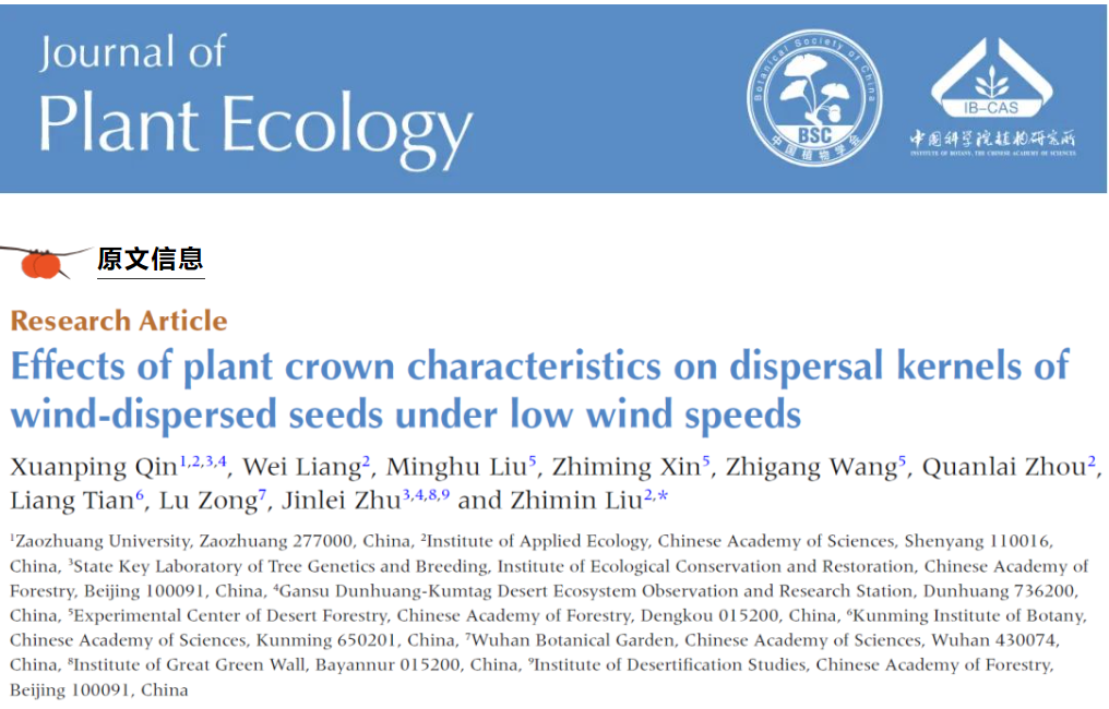 近日,旅游与资源环境学院黄河流域绿色发展研究中心团队在植物种子风力传播方面取得最新进展,相关工作发表在期刊《Journal of Plant Ecology》(中科院1区,TOP期刊)上,论文题目为“Effects of plant crown characteristics on dispersal kernels of wind-dispersed seeds under low wind speeds”。