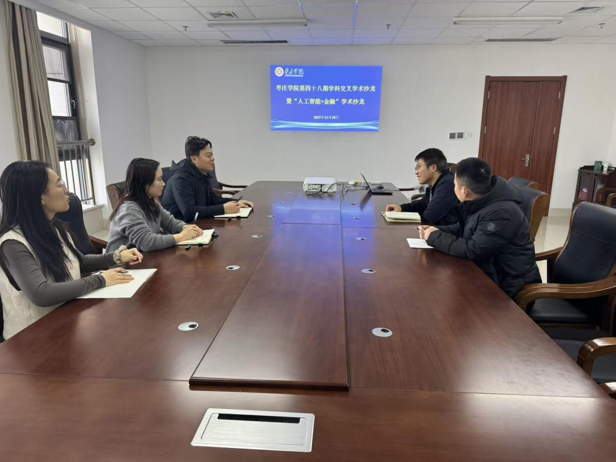 12月18日下午,由研究生处主办、信息科学与工程学院(人工智能学院)和经济与管理学院承办的第四十八期学科交叉学术沙龙暨“人工智能+金融”学术沙龙在薛城校区明理楼331会议室举办。信息科学与工程学院(人工智能学院)和经济与管理学院博士教师代表参加沙龙活动。