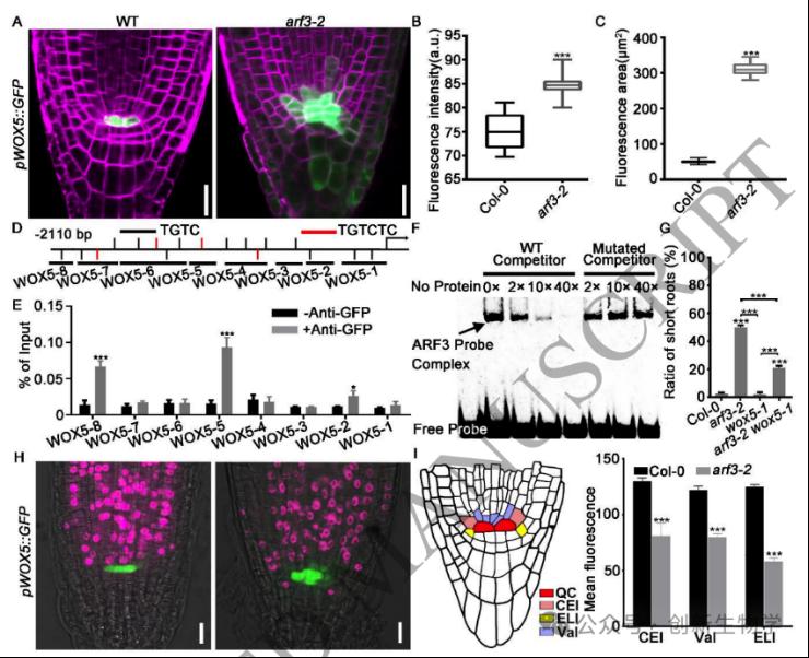 根尖干细胞龛(Stem cell niche, SCN)是植物根系持续生长与器官发生的核心调控中心,由静止中心(Quiescent center, QC)及其周围的干细胞共同构成。其中,转录因子 WOX5 是决定 QC 细胞身份、维持干细胞未分化状态的关键调控因子,其在 QC 中的特异性表达模式对根系正常发育至关重要。长期以来,生长素(Auxin)的动态梯度分布被认为是调控干细胞龛建成与重建的核心信号,然而,生长素如何通过特定分子模块在不同细胞类型中精准激活或抑制 WOX5 转录,其底层的分子开关机制仍未完全阐明。研究团队旨在揭示生长素信号与 WOX5 空间特异性表达之间的关键调控关联,为通过根系构型改良提升作物养分吸收效率提供了重要的理论支撑。