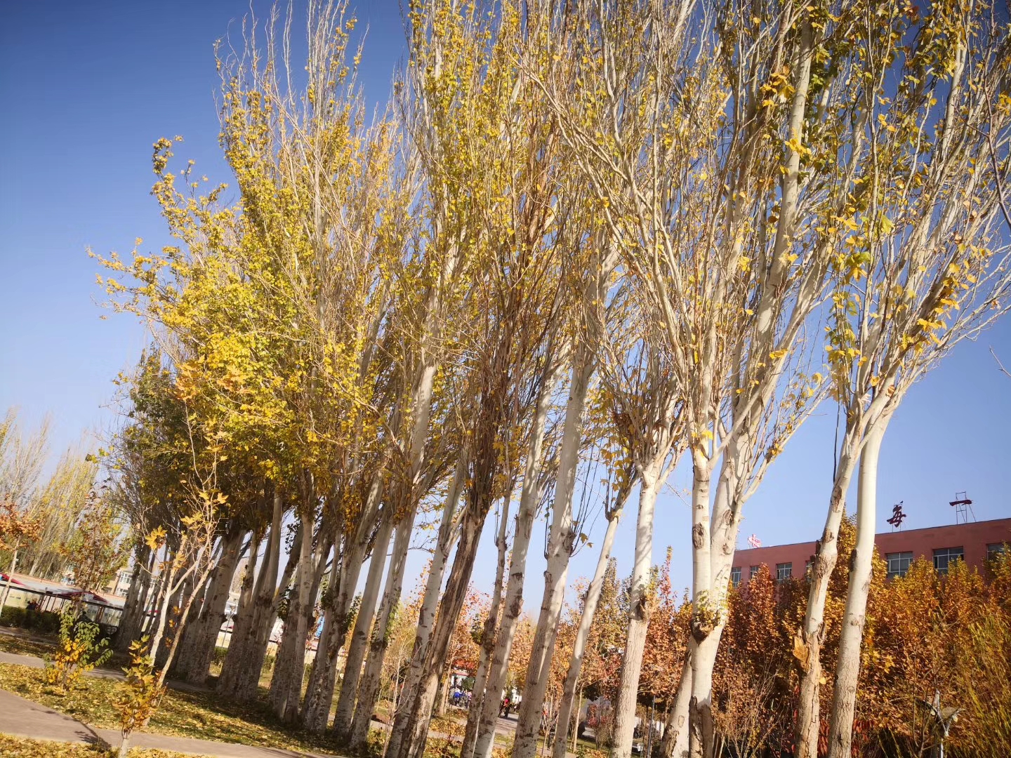闲来无事,徘徊在八一中学校园的小路上,发觉今年的冬天来的太仓促,八一校园的杨树叶还没有黄透,就被一夜的狂风弄得碎落了一地。剩余的那点黄绿的斑驳,加剧了这初冬的苍凉。