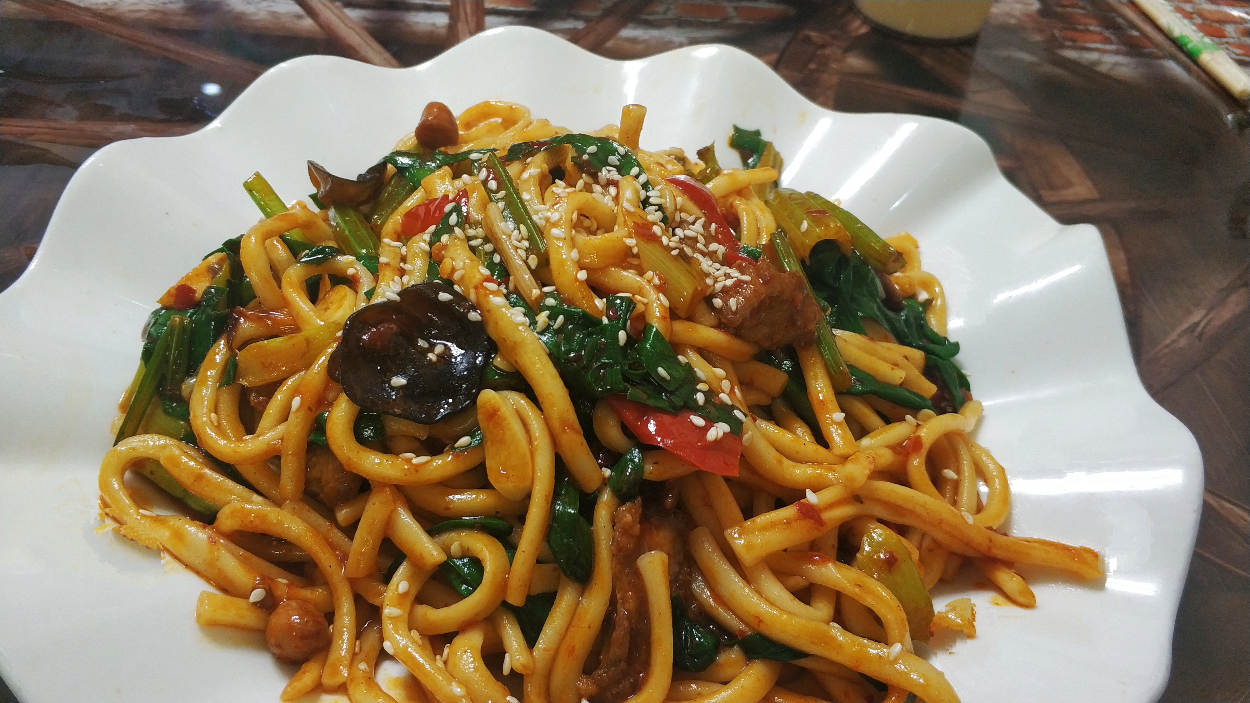 新疆下午两点钟,正是吃午饭的时候,徒步去学校附近的小馆子吃一碗炒面,饥肠辘辘又充满期待地等待面上桌的时刻——刚出炉的面浸满浓郁醇厚的汤汁,翠绿的青菜衬着煸得软硬适中富有嚼劲的肉,炒面冒出些许白色的热气,香味分子与周围的空气瞬间融为一体。此刻,将工作抛之脑后,疲惫感随着一碗热腾腾的炒面消散殆尽。