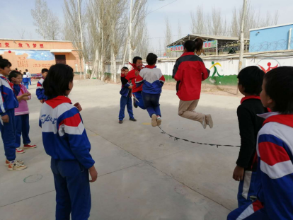 (和学生们一起跳绳)