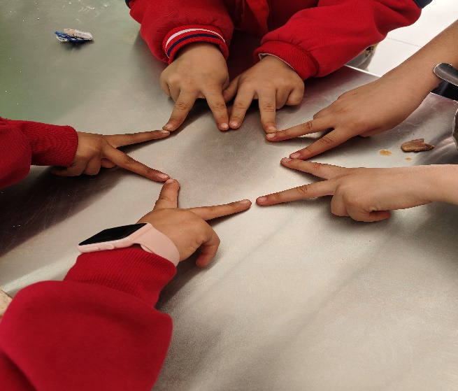 午休吃饭的时候,我身为余光瞥见几个小女孩在用手指摆五角星,我就好奇的探了个头,可能由于平时上课的威严,她们还是习惯性的把手给收了回去。我就告诉她们,想用手机记录一下,然后我就拍下了这个美好的时刻。